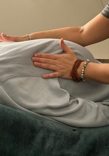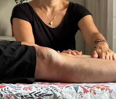 Je commence le soin par la tête, puis laisse mes mains se diriger naturellement vers les zones de votre corps qui en ont besoin.